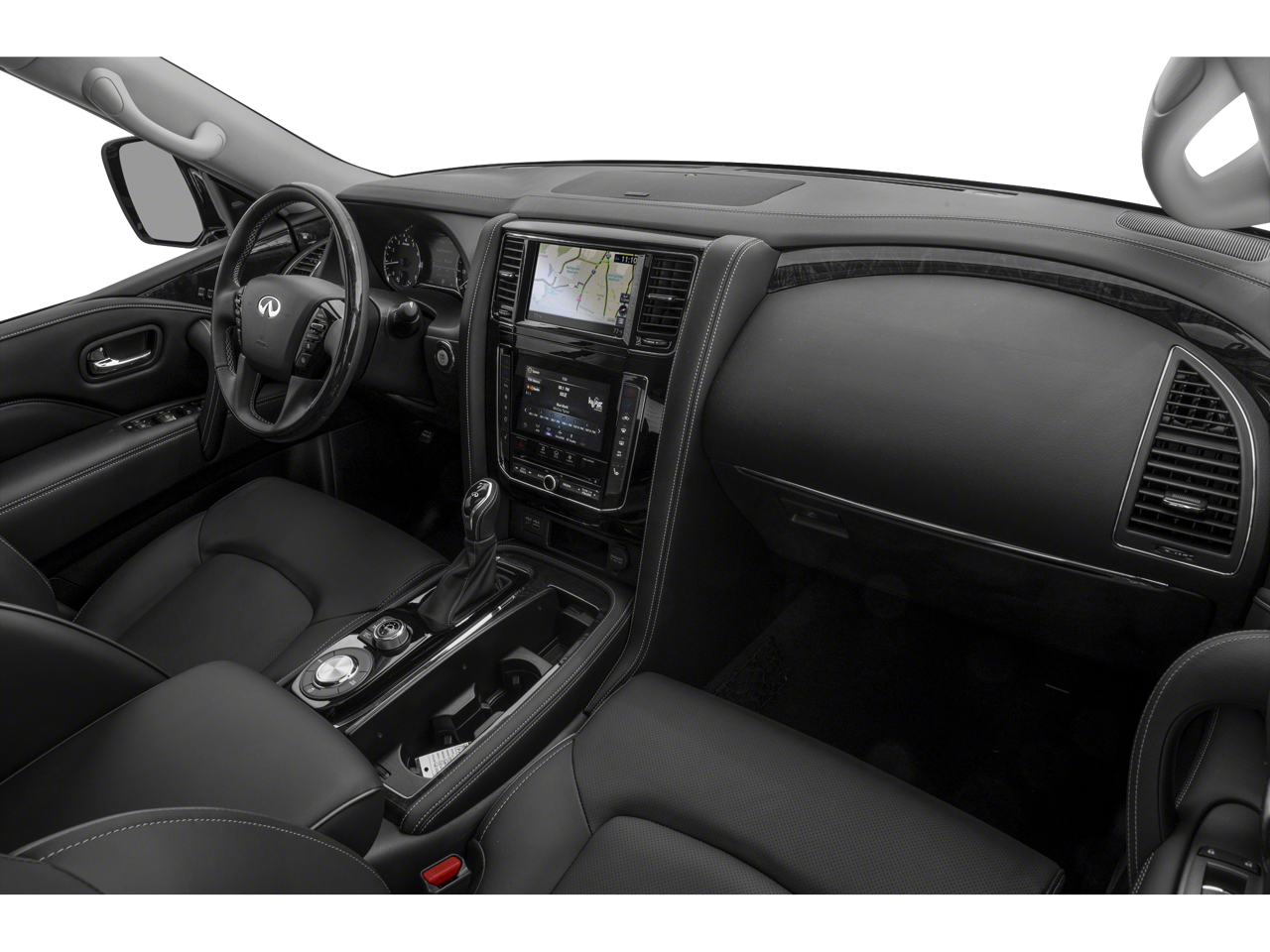 - Radio: Bose Premium Audio System w/13 Speakers -inc: driver's audio stage speed-sensitive volume control, 2 subwoofers, INFINITI InTouch 12.3" interactive display, INFINITI InTouch services (1-year premium trial and 5-year select trial), over-the-air head unit update capability, INFINITI navigation w/lane guidance and 3D building graphics, MapCare w/over-the-air update compatibility (5-year trial period), premium traffic w/live traffic information (5-year trial period), TomTom weather (5-year trial period), HD radio technology, Apple Carplay w/wireless Apple Carplay integration and Android Auto, Siri Eyes Free, Wi-Fi hotspot (30-day or 1GB trial, whichever comes first), Alexa built-in, SiriusXM radio (3-month trial period), SiriusXM Traffic (3-month trial period), SiriusXM Travel Link (3-month trial period): weather, fuel prices, stock prices, sports scores, movie listings and parking, over-the-air head unit update capability (5-year trial period), INFINITI Voice recognition for audio, navigation, Bluetooth® and vehicle information, Bluetooth® hands-free phone system and streaming audio, hands-free text messaging assistant, 2x USB ports for compatible devices for audio streaming and wireless phone charger